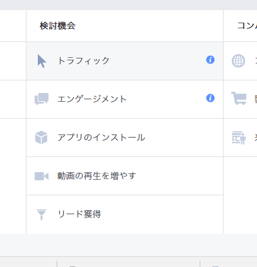 広告画面でトラフックを選択します。(ウェブサイトへ誘導するにはここ!)