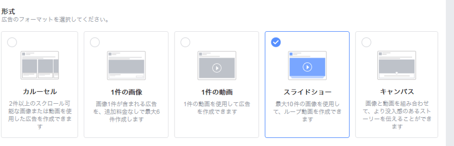 facebook広告のスライドショーを使ってみた。