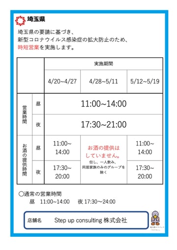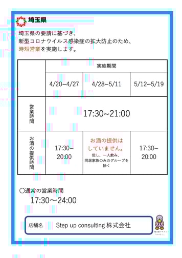 埼玉県時短営業時間告知POP