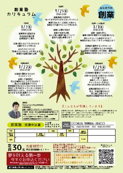 創業したい!!自分のお店を持ちたい!!そんな夢をお持ちの方に、創業するための基礎知識を学んでいただくセミナーです。創業への強い想いも大切ですが、正しい知識を持って挑まなければ、事業は長くは続きません。