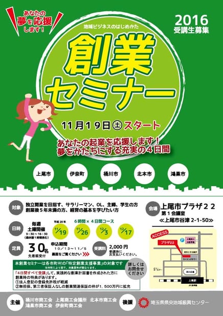 上尾商工会議所・伊奈町商工会・桶川市商工会・北本市商工会・鴻巣市商工会共同 創業セミナー