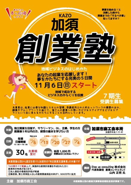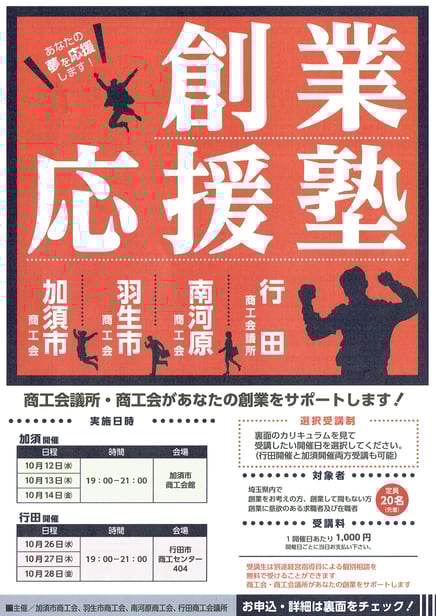 宮代町商工会・蓮田市商工会・久喜市商工会・幸手市商工会・杉戸町商工会・白岡市商工会共同 創業塾全5日間