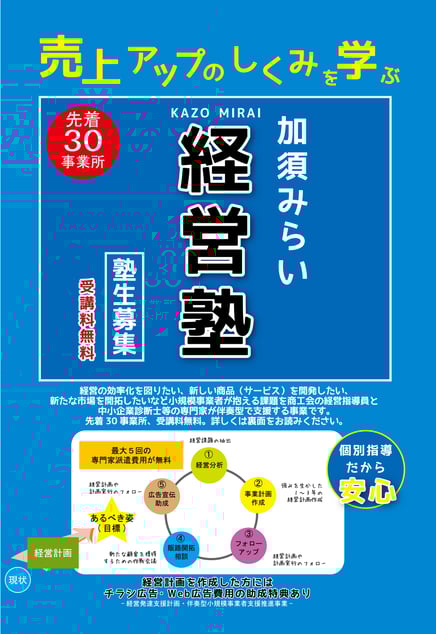 チラシ作成のコンサルティングを通して訴求したい商品・サービスのチラシを商工会負担で15,000円分作成します。