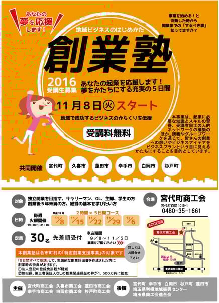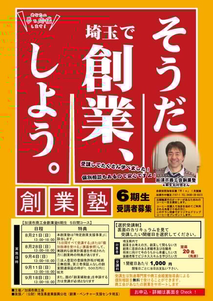 埼玉県行田商工会議所 創業応援塾 3日間コース